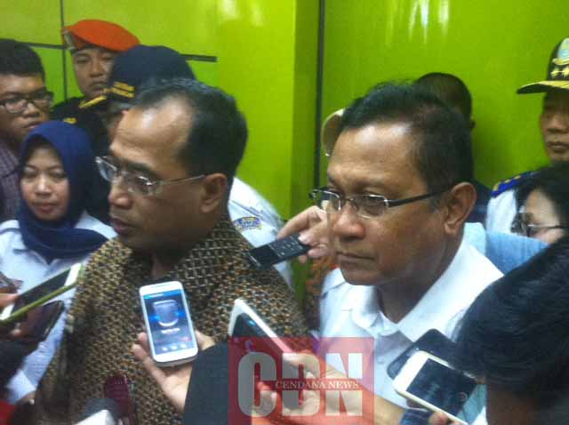 | Menhub Budi Karya Sumadi (kiri) didampingi Edy Sukmoro, Dirut PT. KAI (kanan) di Stasiun Jakarta Gambir. |