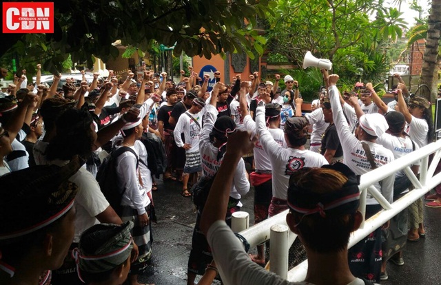 “Kami Pasubayan Desa Adat Bali Tolak Reklamasi Teluk Benoa bersama krama adat dan ForBALI datang untuk mengawal kasus ini sampai warga adat dibebaskan dan tak ada lagi upaya kriminalisasi dan pembungkaman terhadap gerakan rakyat yang menolak reklamasi Teluk Benoa,” ucapnya.