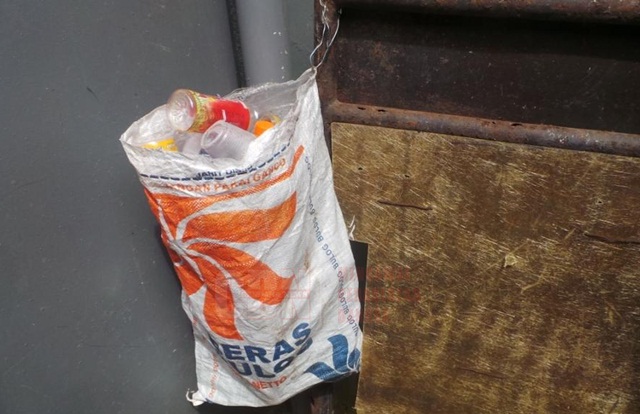 | Tempat warga mengumpulkan sampah di depan rumah sebelum dibawa ke titik pengumpulan Bank Sampah. |