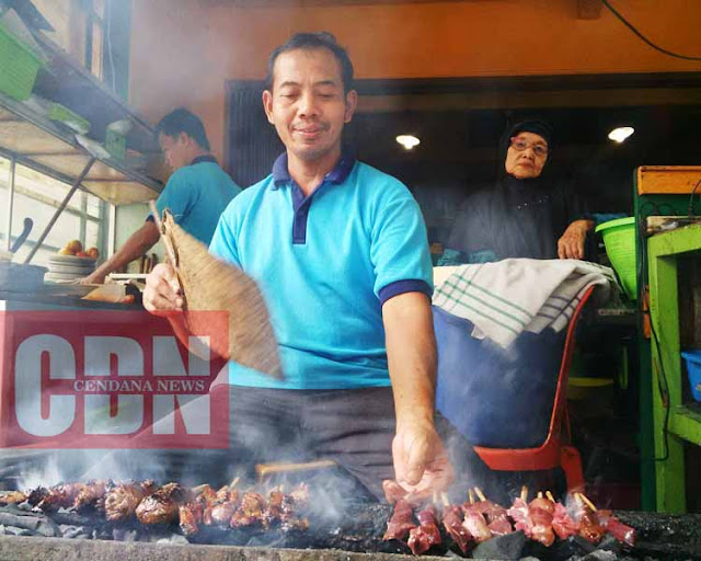 | Bu Bejo Mengawasi karyawan yang tengah membakar sate. |