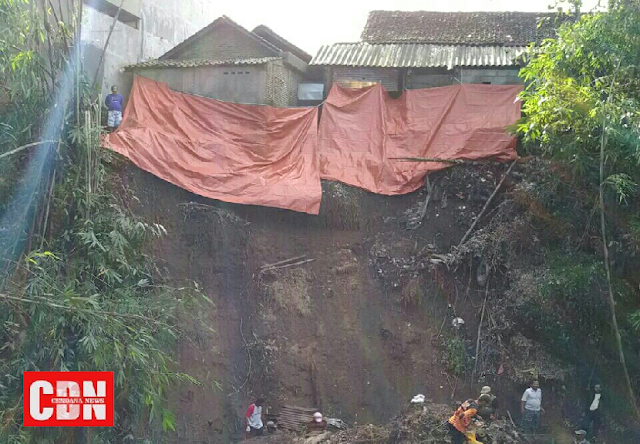 | Longsor yang mengancam sejumlah rumah. |