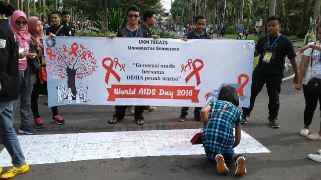 MALANG — Dalam rangka memperingati hari AIDS sedunia yang diperingati setiap tanggal 1 Desember, Tim Penyalahgunaan Napza dan HIV/AIDS (TEGAZ) Universitas Brawijaya (UB) melakukan sosialisasi kepada masyarakat agar tidak menjauhi Orang dengan HIV/AIDS (ODHA).