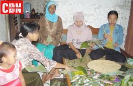 | Para perajin yang membuat tempe berbasis daun pisang. |