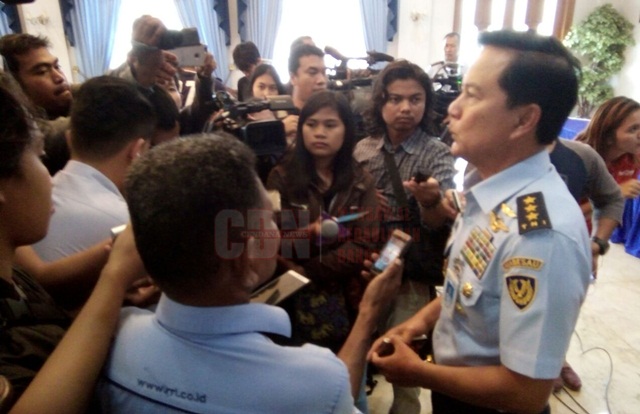 | Wakasau Marsekal Madya (Marsdya) TNI Hadiyan Sumintaatmadja saat gelar pers di Halim Perdanakusuma Jakarta. |
