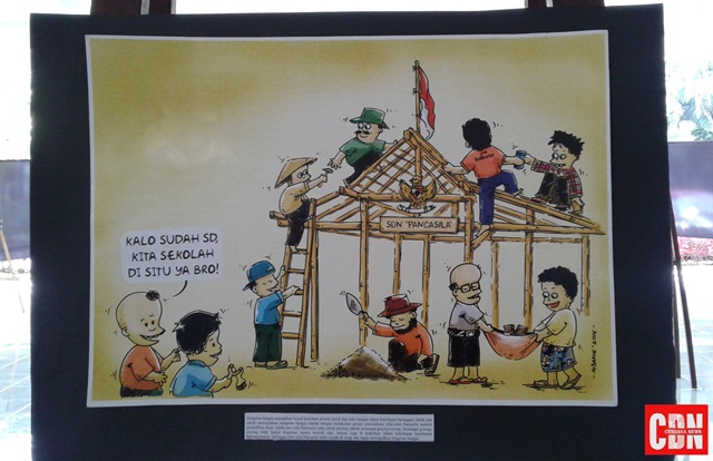 | Deni Ganda Wijaya inginkan adanya pameran karikatur sebagai refleksi nilai-nilai Pancasila yang dirasa kini memudar. |