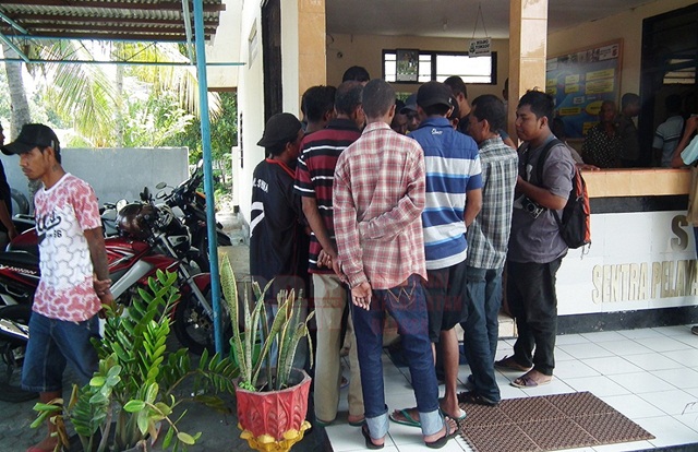 | Belasan orangntua siswa saat melaporkan oknum guru ke Polres Sikka. |