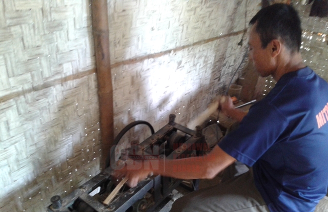 Salah satu pengrajin lidi dupa hio, Kateno (50 tahun) warga Desa Tumpak Pelem, Kecamatan Sawoo ini bahkan menjelang Imlek kemarin, per harinya ia mampu memproduksi satu kwintal lidi.