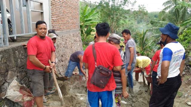 Masyarakat Dusun Muara Piluk bergotong royong membangun jalan secara swadaya |