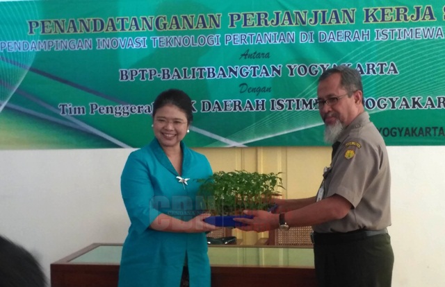 Kepala BPTP DIY, Dr Joko Pramono MP dan Wakil Ketua I Tim Pengerak PKK DIY, GKBRAA Pakualam saat melakukan acara Penandatanganan Perjanjian Kerjasama Pendampingan Inovasi Teknologi Pertanian