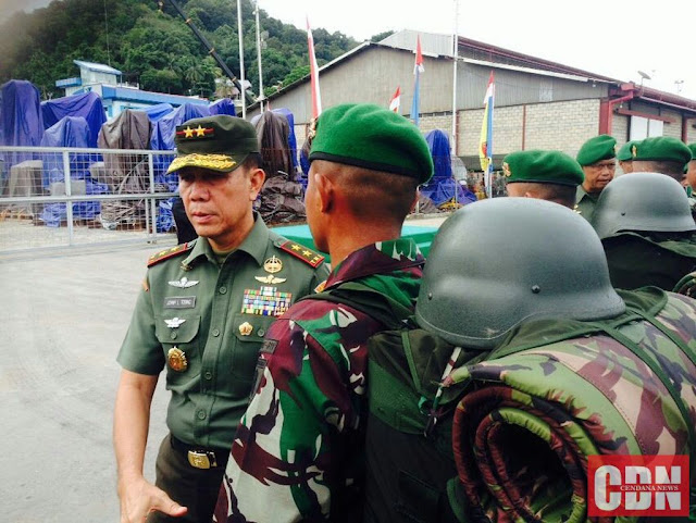 | Pangdam VI/Mulawarman Johny L. Tobing melepas keberangkatan Pamtas dari Yonif 611 Awang Along Rabu pagi (4/1). |