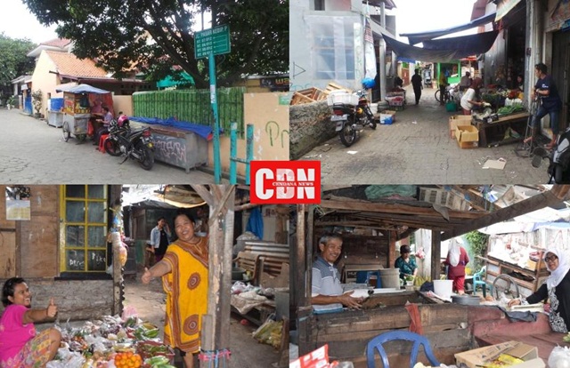 | Kiri atas: jalan masuk menuju Pasar Kedip. Kanan atas: suasana kegiatan pedagang di Pasar Kedip. Kiri bawah/kanan bawah: pedagang Pasar Kedip menyapa Cendana News. |