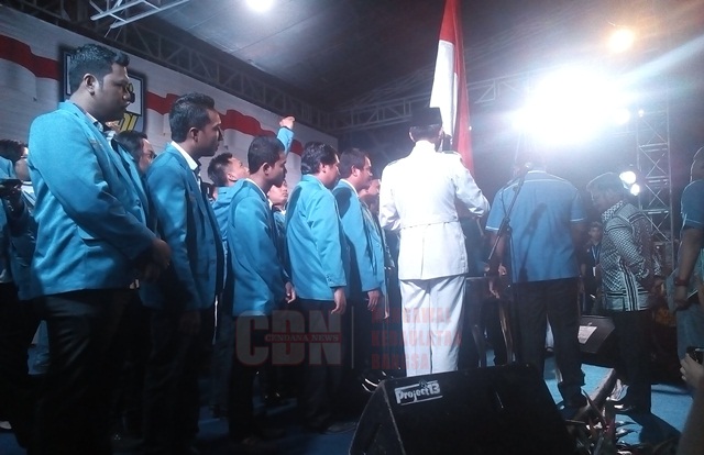 MAKASSAR — Ketua Dewan Pengurus Pusat Komite Nasional Pemuda Indonesia (DPP KNPI), Muhrivai Darus, melantik 263 pengurus Dewan Pengurus Daerah KNPI Sulawesi Selatan, masa bakti 2016-2019, di Rumah Jabatan Gubernur Sulawesi Selatan, Jalan Sungai Saddang, Minggu (29/1/2017), malam.