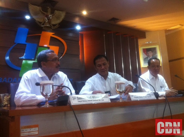 | Suhariyanto (tengah) Kepala BPS Pusat, saat jumpa pers di kantornya. |