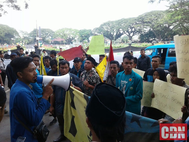| Suasana aksi demo di depan DPRD kota Malang. |