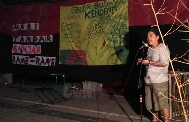 | Saut Situmorang, saat membacakan puisinya. |