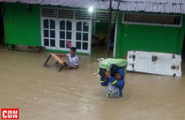 MANADO — BERITA FOTO — Hujan lebat yang turun sepanjang hari di seluruh wilayah Sulawesi Utara (Sulut), Kamis (26/1/2017), menyebabkan banjir dan longsor di sejumlah daerah, akibatnya ratusan warga mengungsi.