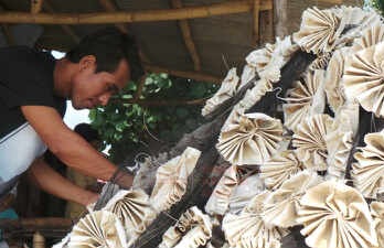 | Seorang nelayan lobster Desa Selong Belanak, Kabupaten Lombok Tengah nampak sedang memperbaiki alat tangkap lobster |