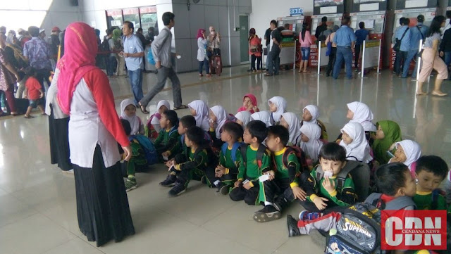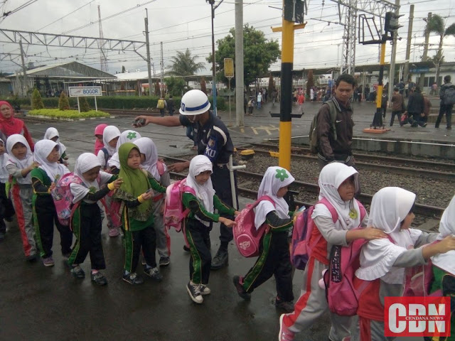 BOGOR—-Sebanyak 32 siswa Taman Kanak-kanak Islam Terpadu (TKIT) Akbar Al Mujtahid, Kecamatan Kemang, Bogor mendapat pengenalan mengenai profesi di Stasiun Bogor, Rabu (1/2) pagi. Rombongan sejumlah 32 siswa didampingi empat guru tiba di Stasiun Bogor sekitar pukul sembilan pagi. Siswa dengan didampingi guru lalu masuk ke area stasiun dan masuk ke aula yang telah disediakan oleh PT. Kereta Api Indonesia (KAI).