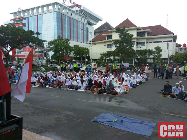 | Peserta aksi 112 di Semarang sedang melantunkan doa bersama. |