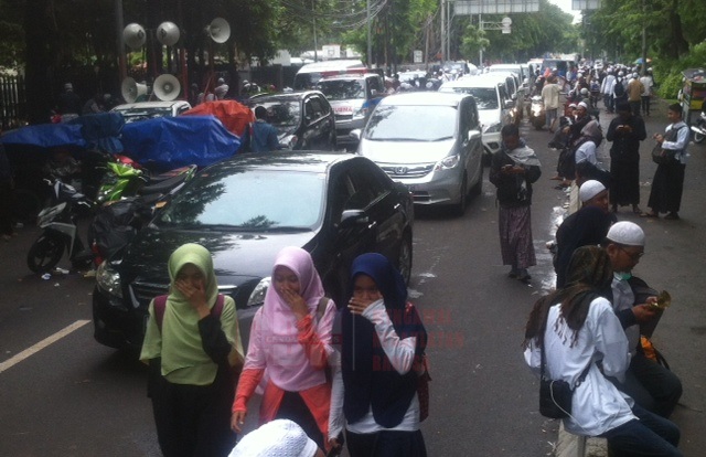 Hingga berita ini ditulis, kemacetan arus lalu lintas kendaraan bermotor tak terhindarkan hampir terjadi di semua jalan-jalan utama di seputaran kawasan Masjid Istiqlal Jakarta. Pergerakan lalu lintas masih tersendat dan cenderung macet. Kemacetan semakin diperparah dengan banyaknya massa yang pulang dengan berjalan kaki sehingga hampir memenuhi seluruh badan jalan.