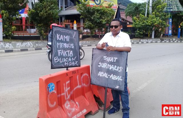 Berbagai macam kalimat di papan hitam itu di antaranya tertulis Kami Jurnalis Menulis Fakta, bukan Hoax, Jurnalis Bukan Mata-mata, Bersama Kata Jaga Bhinneka, dan kalimat-kalimat lainnya. Selain itu, para jurnalis ini juga melakukan orasi di tengah keramaian arus lalu-lintas lingkaran Abepura bawah.