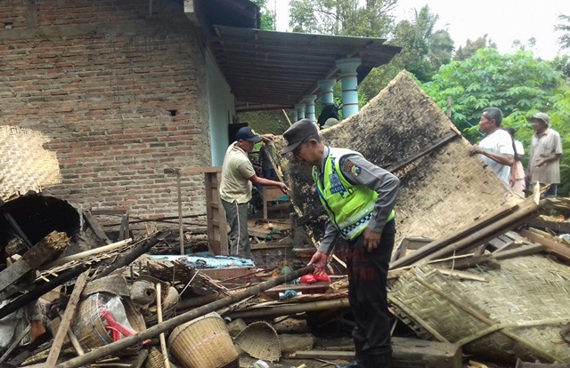 PONOROGO — Usai diguyur hujan sejak Jumat (3/2/2017) dini hari tadi, dua rumah warga di Dusun Tanjung, RT 02, RW 01, Desa/Kecamatan Ngrayun, ditimpa musibah tanah longsor. Dua rumah warga, yakni Sukirno (55) dan Pardi (65), tertimpa longsoran pada sekitar pukul 09.30 WIB. Tak ada korban jiwa dalam musibah ini, namun kerugian material diperkirakan mencapai Rp 15 Juta.