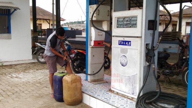 “Sebelum ngebabang kita membeli bahan baku solar di SPBN karena di wilayah dermaga Muara Piluk memiliki satu unit tempat penjualan bahan baku solar yang akan kita gunakan untuk melaut selama beberapa hari,”ungkap Sunding saat ditemui di Stasiun Pengisian Bahan Bakar Nelayan di dermaga Muara Piluk Bakauheni, Minggu (19/2/2017).