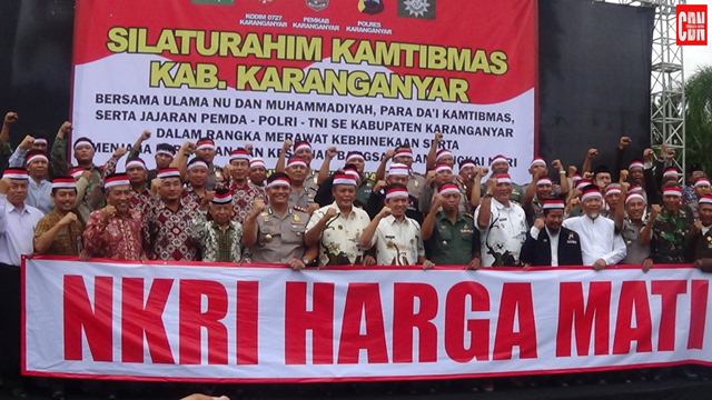 SOLO — Pemerintah Kabupaten Karanganyar, Jawa Tengah, menggelar silaturahmi Keamanan dan Ketertiban Masyarakat (Kantibmas). Kegiatan sosialisasi Kantibmas ini sekaligus sebagai deklarasi untuk menjaga keutuhan Negara Kesatuan Republik Indonesia (NKRI).