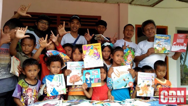 | Sugeng Hariyono membawa buku buku bersama para relawan pustaka armada bergerak . |