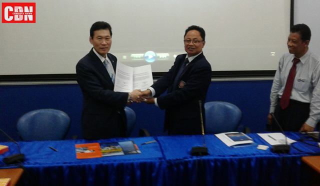 | Dr. Ir. Tundung Subali Patma, MT (tengah) bersama Park Jinsung (kiri) serah terima MoU. |