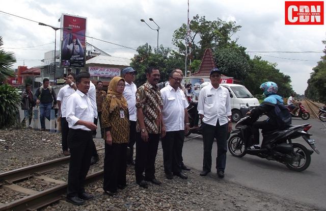 | Ahmad Herri Marzuki, FX Hadi Rudyatmo dan rombongan Dirjen Bina Marga Kemenpupera meninjau lokasi perlintasan kereta api. |