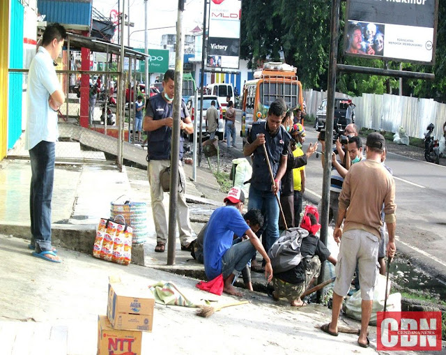 Saat dilakukan bakti sosial yang dimotori oleh Aliansi Wartawan Sikka (AWAS) dengan menggandeng Bank Sampah Flores serta melibatkan berbagai elemen masyarakat, pemerintah dan TNI Polri, Jumat (3/2/2017), pemilik tempat usaha sama sekali tidak terlibat.