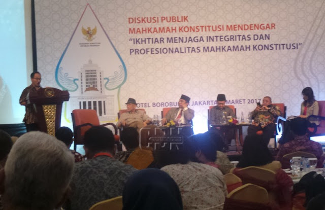 JAKARTA — Berbeda dengan pemaparan Jimly Asshiddiqie tentang pembenahan sistem dan budaya kerja di Mahkamah Konstitusi (MK), dimana harus membenahi kinerja internal khususnya mengenai hakim konstitusi, Ketua Komisi Yudisial, Prof. Dr. Aidul Fitriciada Azhari, S.H., M.Hum, melihat pembenahan lembaga MK dalam perspektif lain.