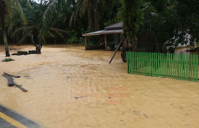 | Kondisi Banjir di Kecamatan Kamang Baru Sijunjung yang menggenangi pemukiman warga. (Dok. BPBD Sijunjung) |