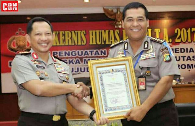 Penghargaan yang diterima Kadiv Humas Polda Metro Jaya ini, karena aktif dalam diseminasi ke media mainstream, memberikan laporan inovasi tepat waktu, dan juga telah berhasil meningkatkan reputasi kepolisian untuk mewujudkan Polri yang promoter.