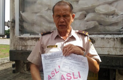 | Penanggungjawab BKP Bakauheni Drh.Azhar saat menunjukkan SKKH yang diduga dimanipulasi |