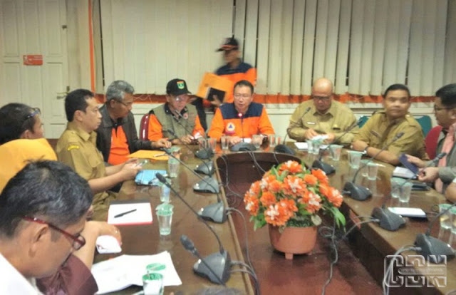 | Kepala BNPB Willem Rampangilei (tengah) memimpin rapat bersama Wakil Gubernur Sumbar Nasrul Abit terkait tanggap darurat |