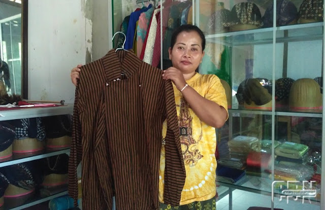 | Martini menunjukkan salah satu baju surjan buatannya |