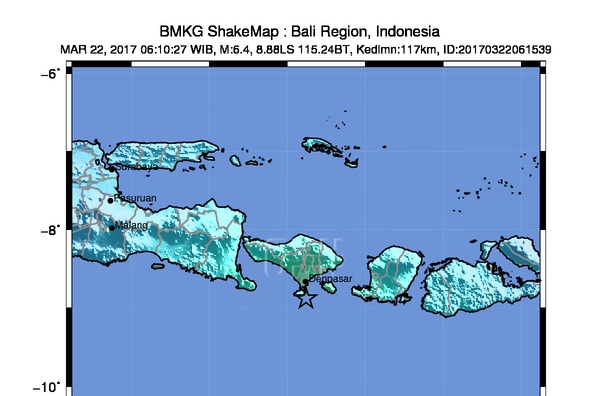 Hasil analisis Badan Meteorologi Klimatologi dan Geofisika (BMKG) menunjukkan, gempa bumi terjadi pada pukul 07:10:27 Wita, dengan episenter ada koordinat 8.88 LS dan 115.24 BT, di kedalaman 117 kilometer,” kata Kepala Stasiun Geofisika Mataram, Agus Rianto, melalui keterangan yang diterima Cendana News, Rabu (22/3/2017).