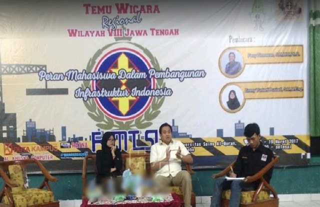 WONOSOBO — Banyaknya bangunan yang merusak estetika alam sekitar menjadi keprihatinan tersendiri bagi para arsitek, karenanya saat ini digencarkan konsep infrastruktur berdasarkan Green Technology. Hal demikian diungkapkan oleh CEO Jatengland, Ferry Firmawan, dalam acara temu wicara regional Forum Mahasiswa Teknik Sipil di Aula Al-Ala, Universitas Sains Al-Quran Wonosobo.