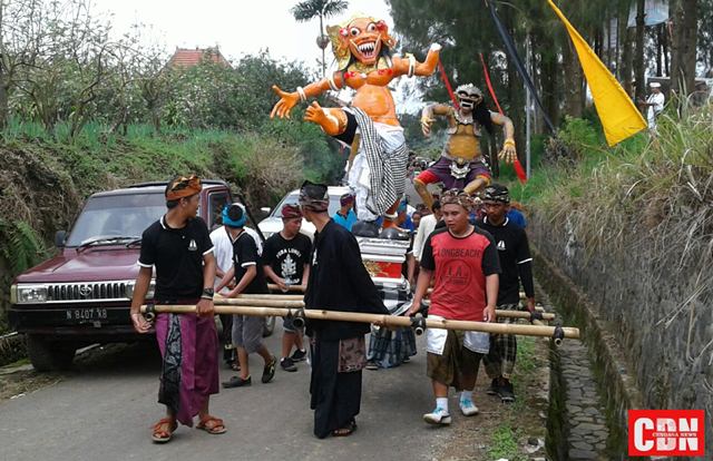 Selain itu, kegiatan tersebut juga diikuti dengan pawai Ogoh-ogoh sebagai simbol keserakahan manusia yang harus dihilangkan. Sebanyak sembilan Ogoh-ogoh berukuran raksasa turut diarak mengelilingi desa. Ogoh-ogoh dirupakan dengan raksasa sebagai wujud keserakahan manusia. Oleh sebab itu, ogoh-ogoh wajahnya tidak ada yang bagus atau buruk rupa yang jauh berbeda dengan gambaran dewa.