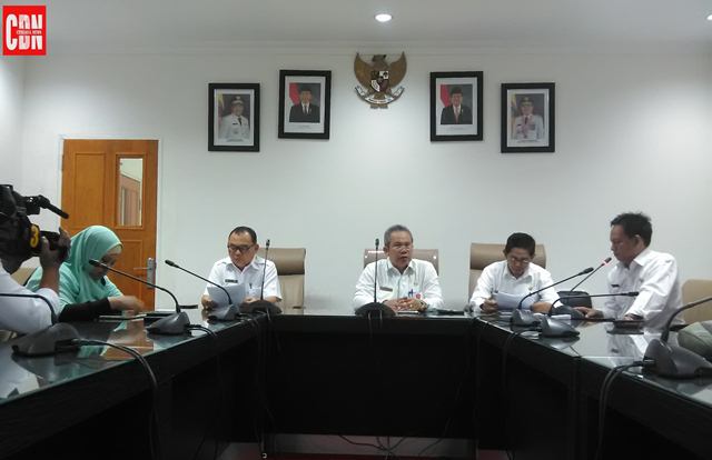 | M. Yusuf Effendi (tengah) saat konferensi pers persiapan UNBK. |