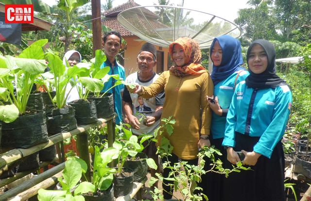 | Ketua KWT Pojok Subur, Lilis Ai, menjelaskan jenis tanaman kepada Ketua Karang Taruna Generasi, Yayan Riyana. |