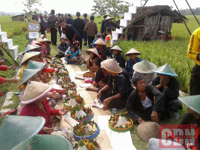 Tepat pukul 08.00 WIB, arak-arakan rombongan ibu-ibu dan gadis terlihat kompak berdandan ala ibu petani yang mengenakan kebaya dan jarik (kain batik.red) sembari membawa ingkung berjalan bersama dari pendapa desa menuju lahan pertanian padi milik warga sebagai titik akhir.