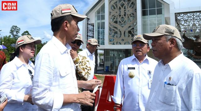 Kedatangan Presiden beserta rombongan di Bandara Pangsuma, Putussibau, Kapuas Hulu, disambut langsung Gubernur Kalimatan Barat dan Ibu Federica Cornelis serta melanjutkan perjalanan menuju lokasi Pos Lintas Batas Negara (PLBN) Terpadu Nanga Nadau.