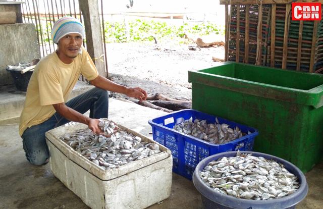 | Pembudidaya ikan sedang menyiapkan pasokan ikan. |