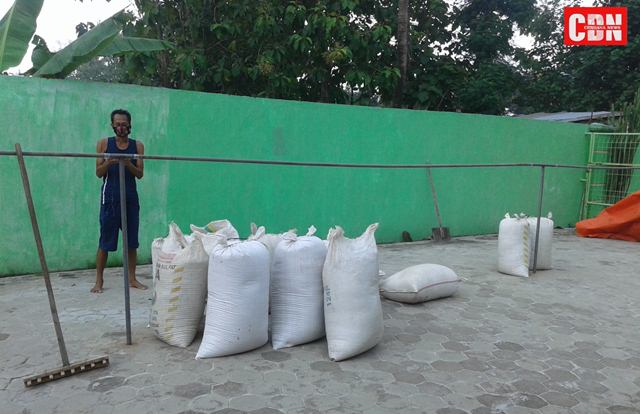 | Padi yang dijemur petani di halaman rumah. |
