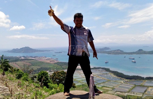 | Pulau Jawa tampak di kejauhan dari atas Pematang Malang, Lampung Selatan |