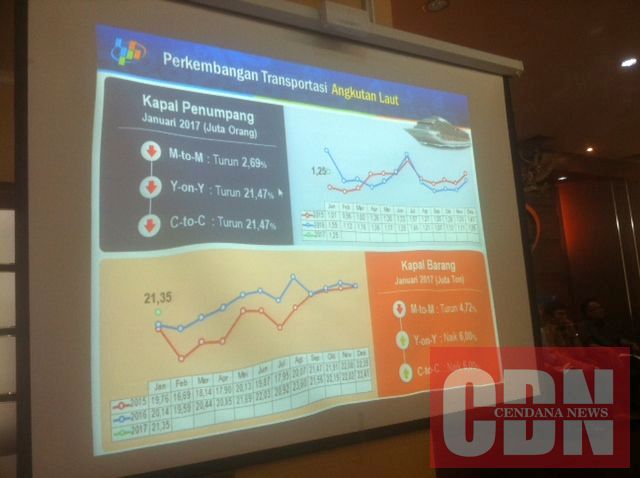 Jumlah penumpang angkutan laut dalam negeri yang diberangkatkan pada Januari 2016 tercatat sebesar 1,3 juta orang atau mengalami penurunan sebesar 2,69 persen apabila dibandingkan dengan bulan Desember 2016. Jumlah barang yang diangkut juga mengalami penurunan sebesar 4,72 persen, yaitu menjadi 21,4 juta ton.