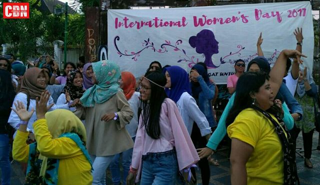 Berbagai elemen komunitas yang tergabung dalam Jaringan Perempuan Yogyakarta (JPY), mulai dari pelajar, mahasiswa, aktivis, hingga buruh dan pekerja rumah tangga di Yogyakarta secara serempak menggelar kegiatan peringatan hari perempuan sedunia di kawasan Jalan Malioboro dan Titik Nol Kilometer pada hari ini. Setelah pagi tadi aksi dilakukan dengan unjuk rasa, sore ini aksi dilakukan dengan kegiatan simpatik yakni berjoget bersama.